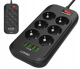 Przedłużacz, listwa zasilająca na 6 gniazd, 4x USB