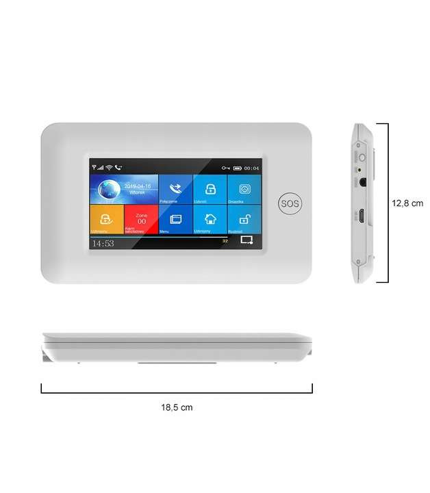 Niewielka centrala o nowoczesnym wyglądzie, którą bez problemu można ukryć przed nieproszonymi gośćmi. Centrala posiada duży, kolorowy wyświetlacz z dotykowym ekranem, który ułatwia posługiwanie się systemem alarmowym. Urządzenie może obsłużyć do 99 czujników bezprzewodowych, co daje możliwość rozbudowy całego systemu w przyszłości. Konfiguracja urządzenia jest bardzo prosta i intuicyjna, natomiast czujniki można przypisać do 3 różnych stref bezpieczeństwa: zewnętrznej, wewnętrznej oraz aktywnej 24h.